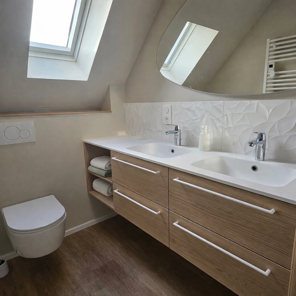 En amont, nous vous offrons un accompagnement personnalisé dans le choix et l’harmonisation de vos couleurs et finitions afin de créer une ambiance unique, qui vous ressemble !